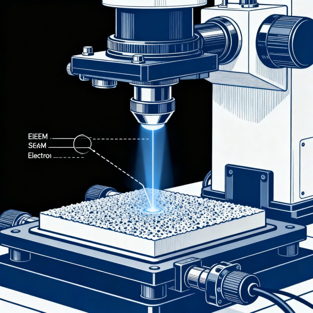 Uses electron beams to create detailed images of material surfaces and morphology at nanoscale resolution.